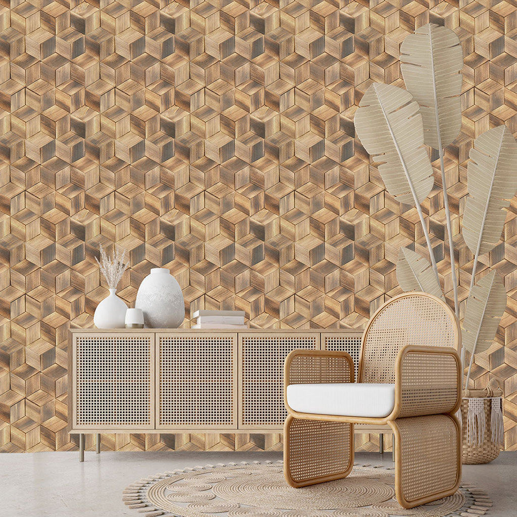 Jedes Paneel wird aus authentischen Massivholzelementen gefertigt, die gemeinsam ein einzigartiges geometrisches Mosaikmuster bilden. Ob im Wohnzimmer, Büro, Restaurant oder Empfangsbereich – diese Paneele sorgen für eine raffinierte, moderne Optik und machen jede Wand zu einem echten Blickfang.